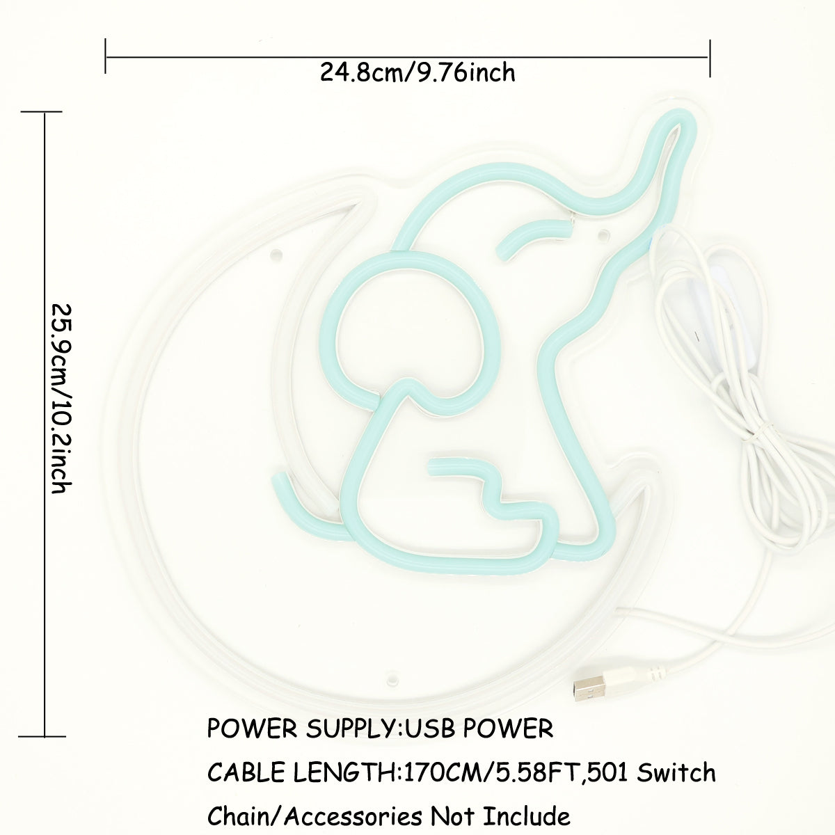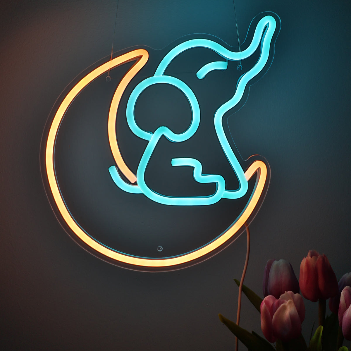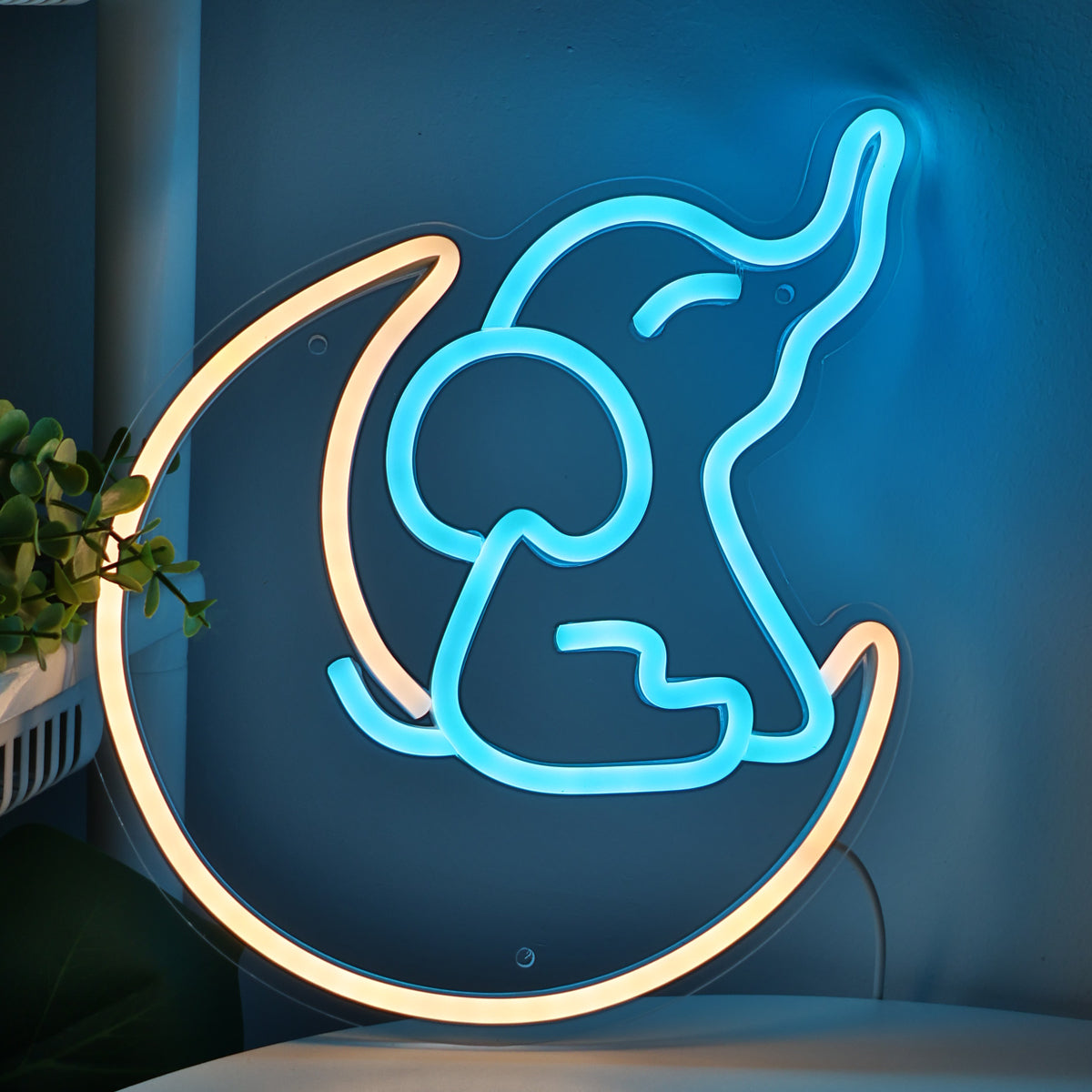 TONGER® Elephant Sit on Moon Wall LED Neon Sign Light