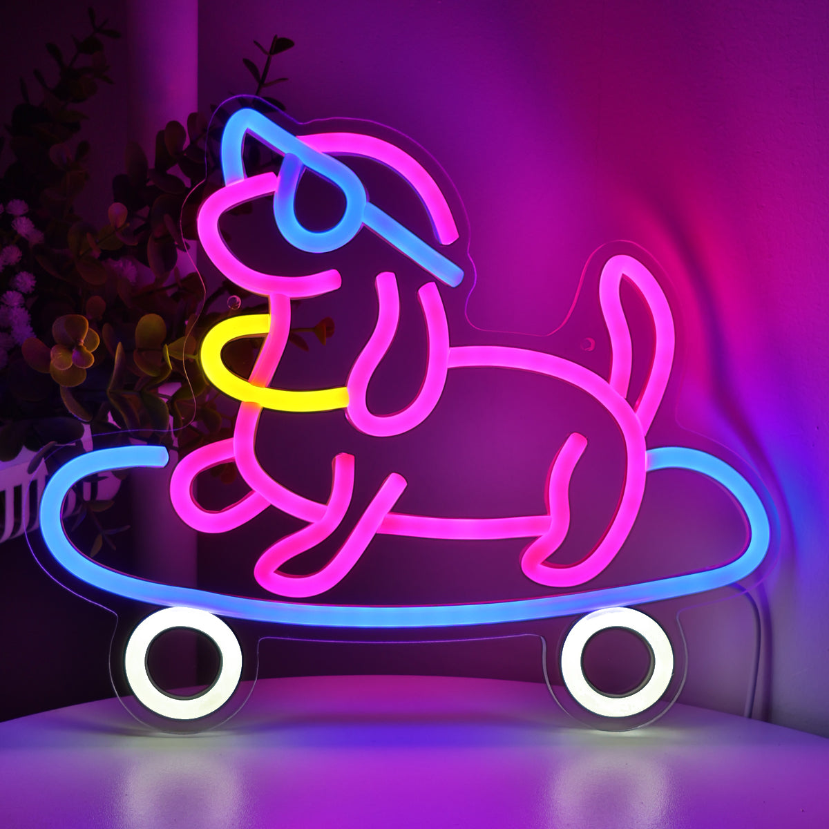TONGER® Glasses-Wearing Skateboarding Dog Wall LED Neon Sign Light