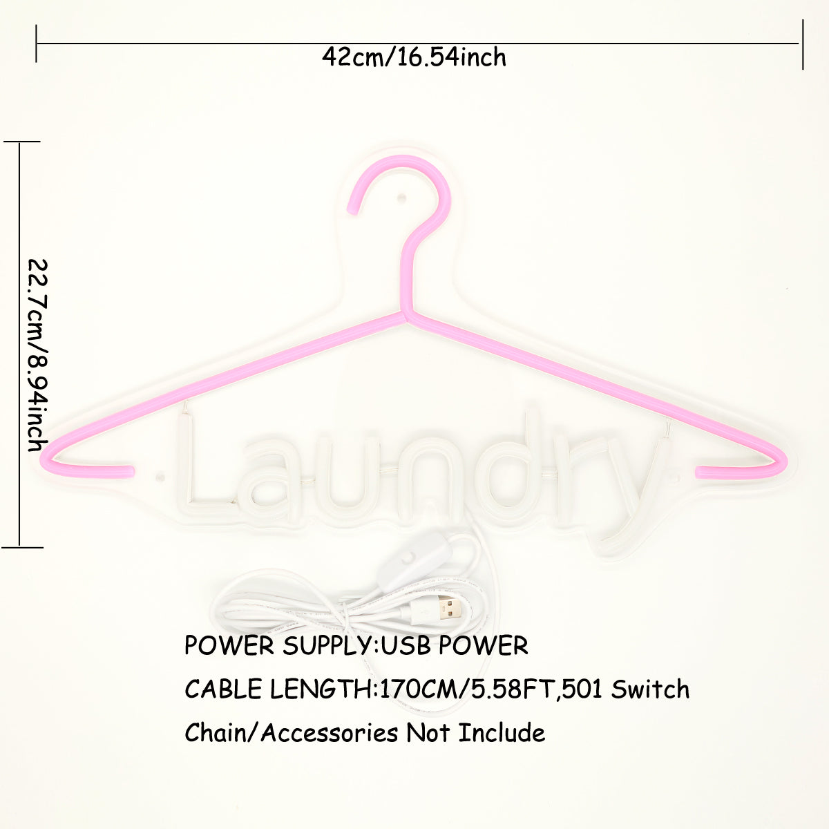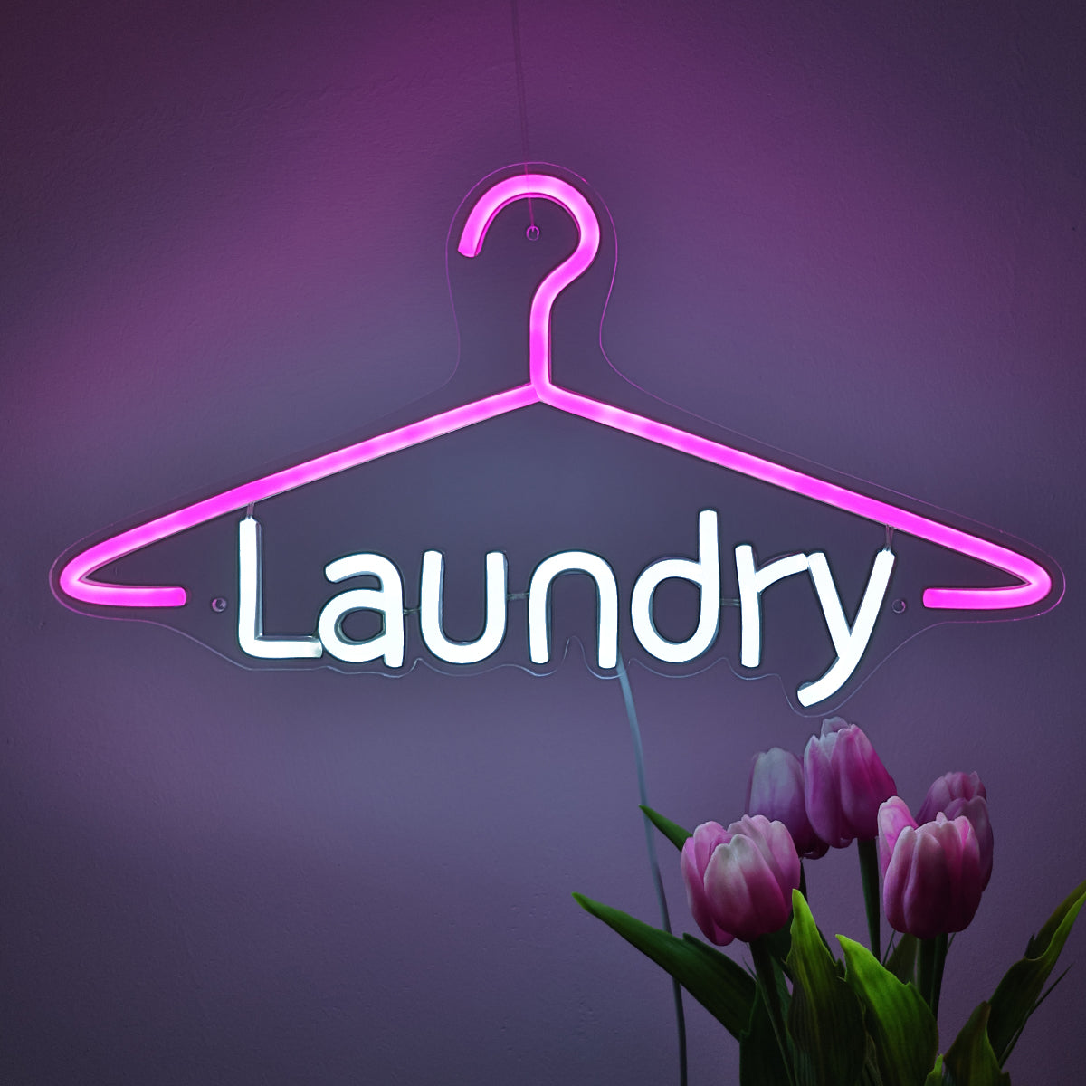 TONGER® Laundry With Clothes Hanger Wall LED Neon Sign Light
